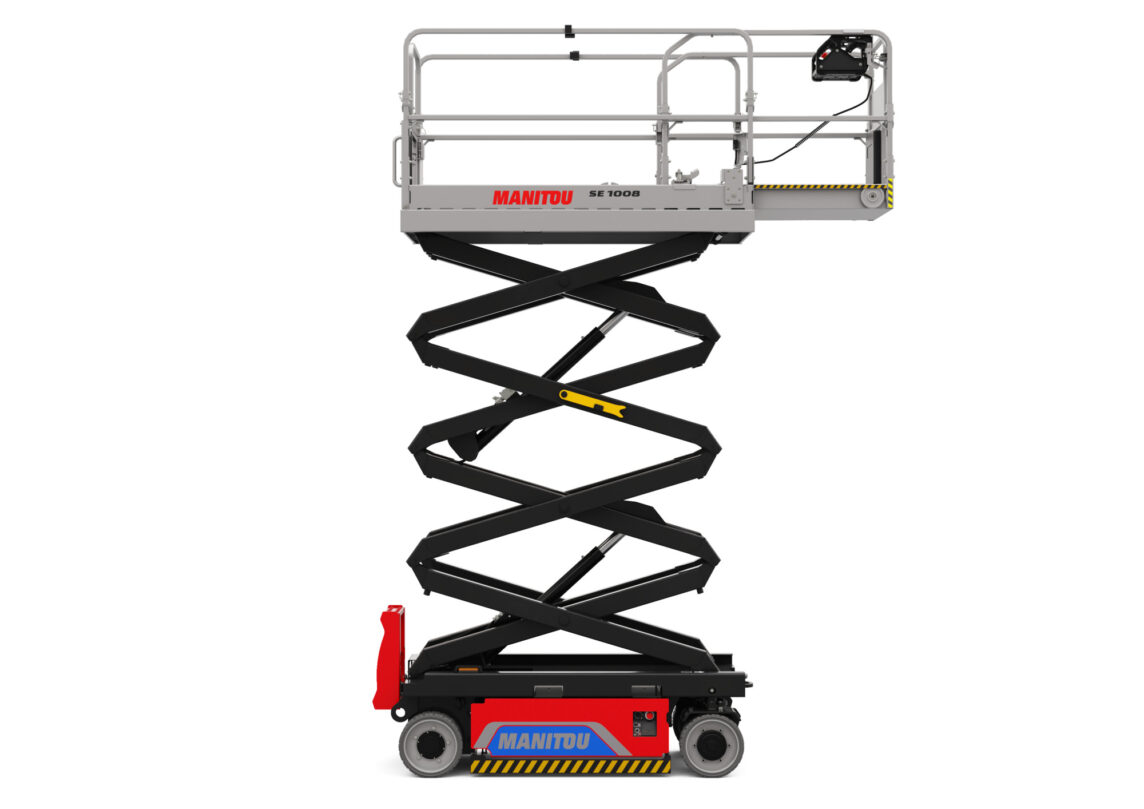 Plataforma de tijera eléctrica Manitou SE 0808, compacta y eficiente, ideal para trabajos en altura hasta 7,8 m. Perfecta para interiores, mantenimiento e instalaciones. Disponible en venta y alquiler en Zaragoza, con cero emisiones y máximo rendimiento profesional.