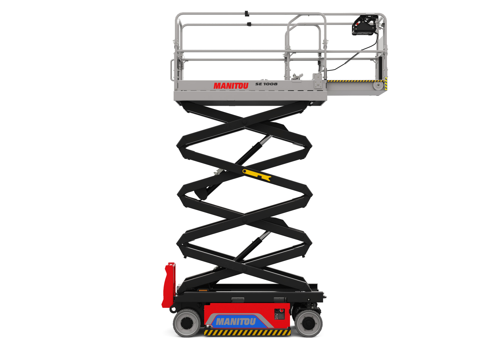 Plataforma de tijera eléctrica Manitou SE 1008, diseñada para trabajos en altura hasta 10 m con máxima estabilidad y cero emisiones. Compacta, eficiente y fácil de manejar. Disponible en venta y alquiler en Zaragoza, ideal para uso profesional en interiores.