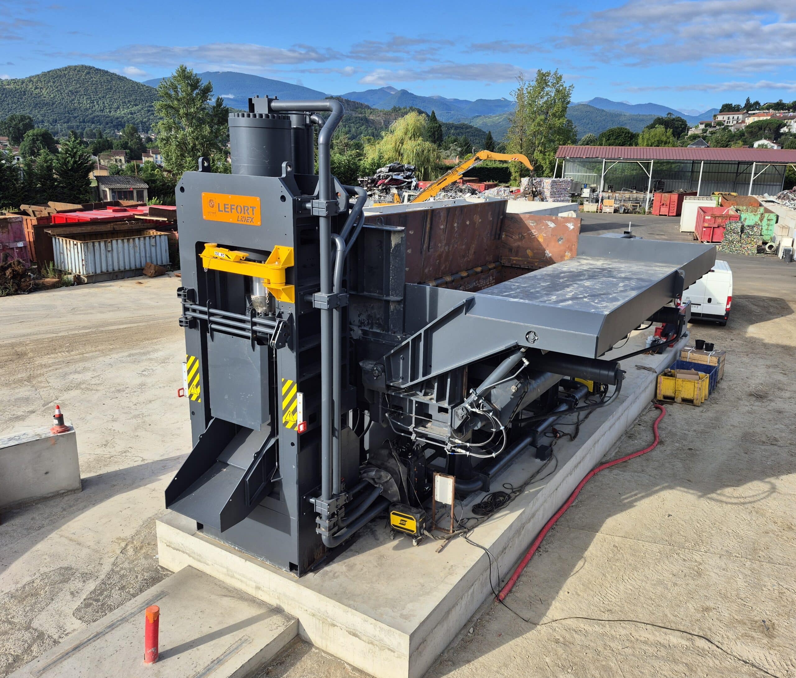 LEFORT LIDEX – prensa-cizalla de compresión lateral con ciclo completamente automático, caja 8–10 m (2,0–2,6 m ancho) y fuerza de corte 1.000–2.000 T (hasta 2.200 T en especificación regional). Alta productividad (hasta 115 t/h) y mantenimiento rápido. BERDIEL, distribuidor oficial en Aragón y Soria.